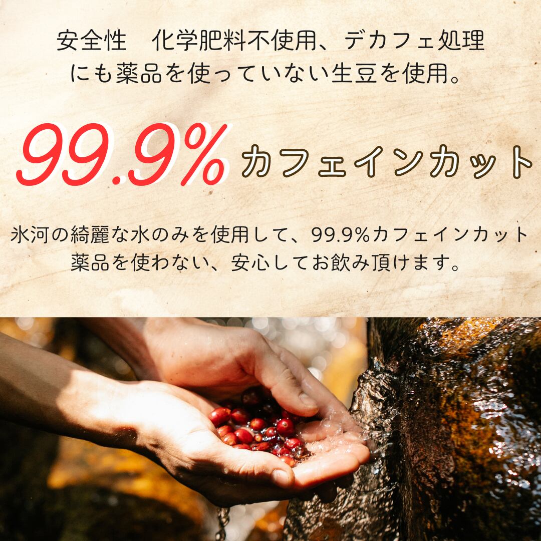 ※このカフェインレスコーヒーは、標高5,500mのメキシコ最大の山“Pico de Orizaba”の天然水を使用した「水抽出法」により薬品を一切使わず含有カフェインの99.9%を除去しています。