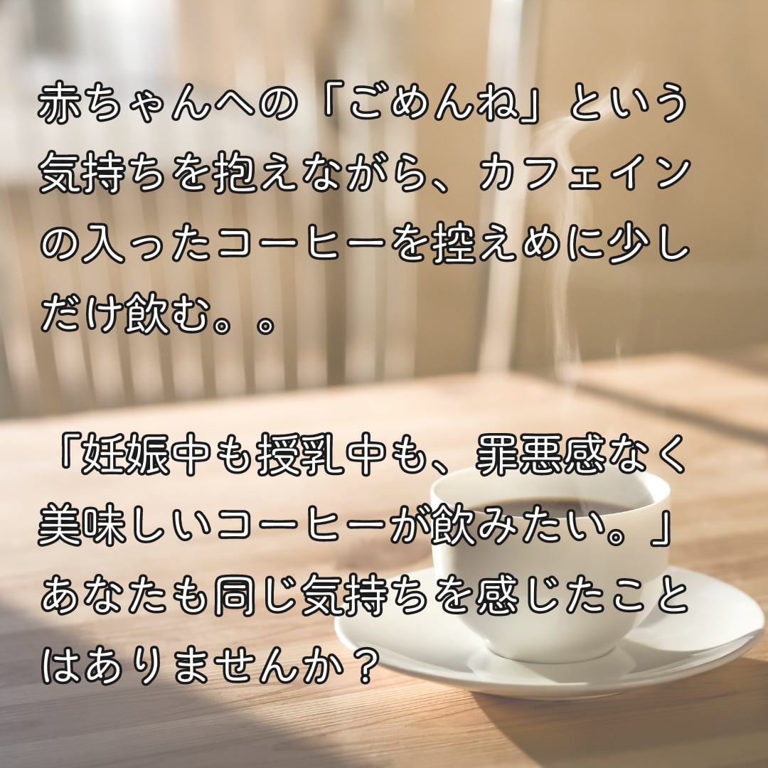 コーヒーが大好きだけど我慢している妊婦さんや、カフェインの摂取を控えている方にも心から満足していただける「カフェインレスコーヒー」になっております。
