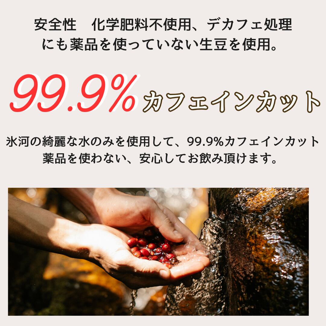 ※このカフェインレスコーヒーは、標高5,500mのメキシコ最大の山“Pico de Orizaba”の天然水を使用した「水抽出法」により薬品を一切使わず含有カフェインの99%を除去しています。